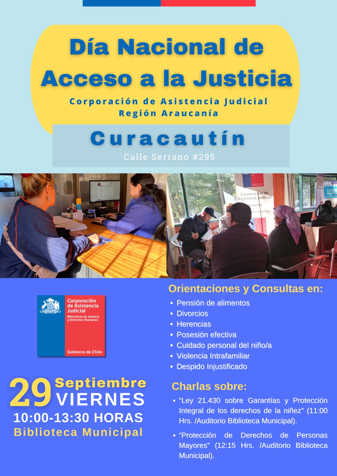La conmemoración del Día Nacional de Acceso a la Justicia surge desde la inquietud de las y los funcionarios de las Corporaciones de Asistencia Judicial (CAJ), a través de los gremios, sus directivos y MinjuDDHH para dar visibilidad al trabajo que se realiza y al compromiso inquebrantable y permanente por acercar la justicia a los más vulnerables de nuestra sociedad, a partir de la jornada realizada en la localidad de Mallarauco, el 29 de septiembre de 2016.