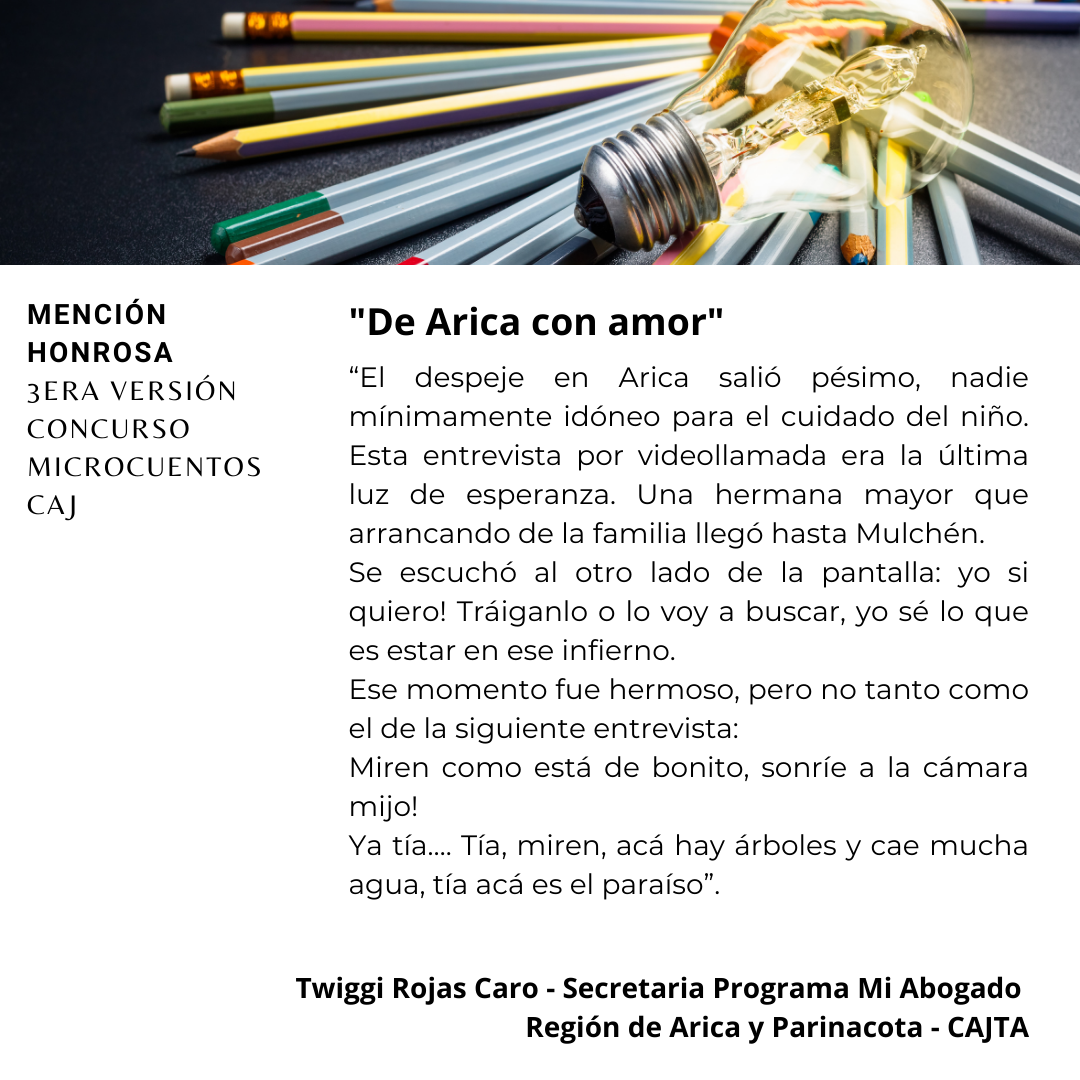 • “De Arica con amor”. Twiggi Rojas Caro. Secretaria Programa Mi Abogado Región de Arica y Parinacota. CAJTA.