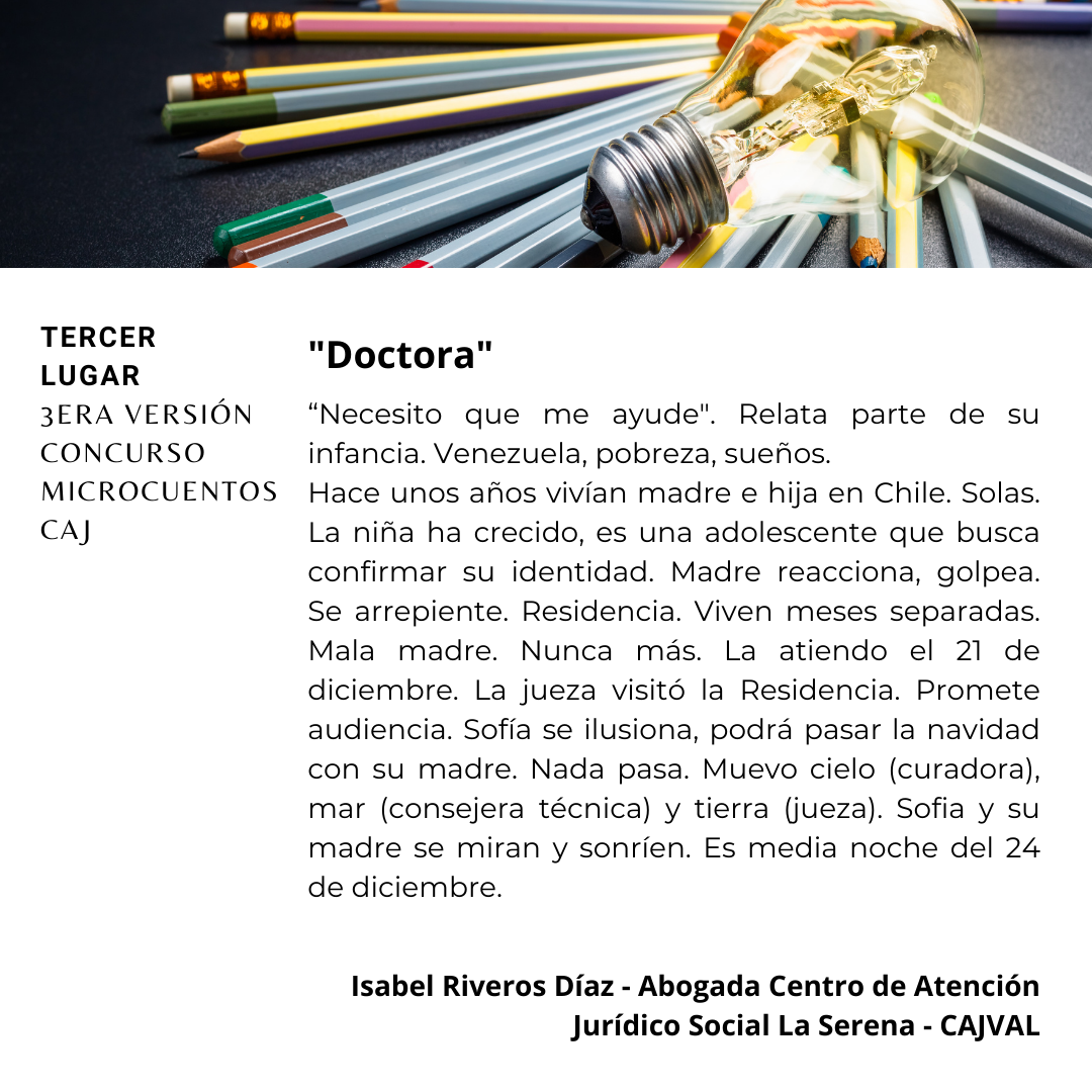 “Doctora”. Isabel Riveros Díaz. Abogada Centro de Atención Jurídico y Social La Serena. CAJVAL.
