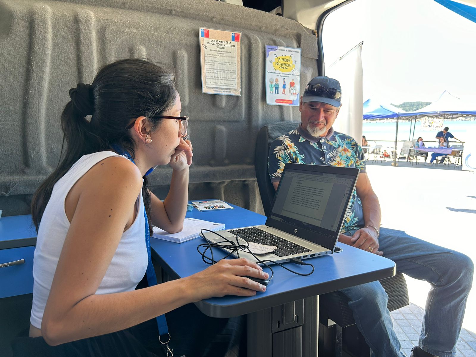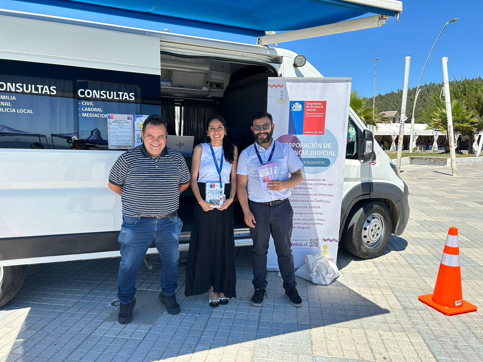 La iniciativa consideró el despliegue de profesionales de la CAJ Biobío, quienes respondieron las consultas socio-jurídicas de los usuarios y usuarias de los sectores de Dichato y Coliumo.