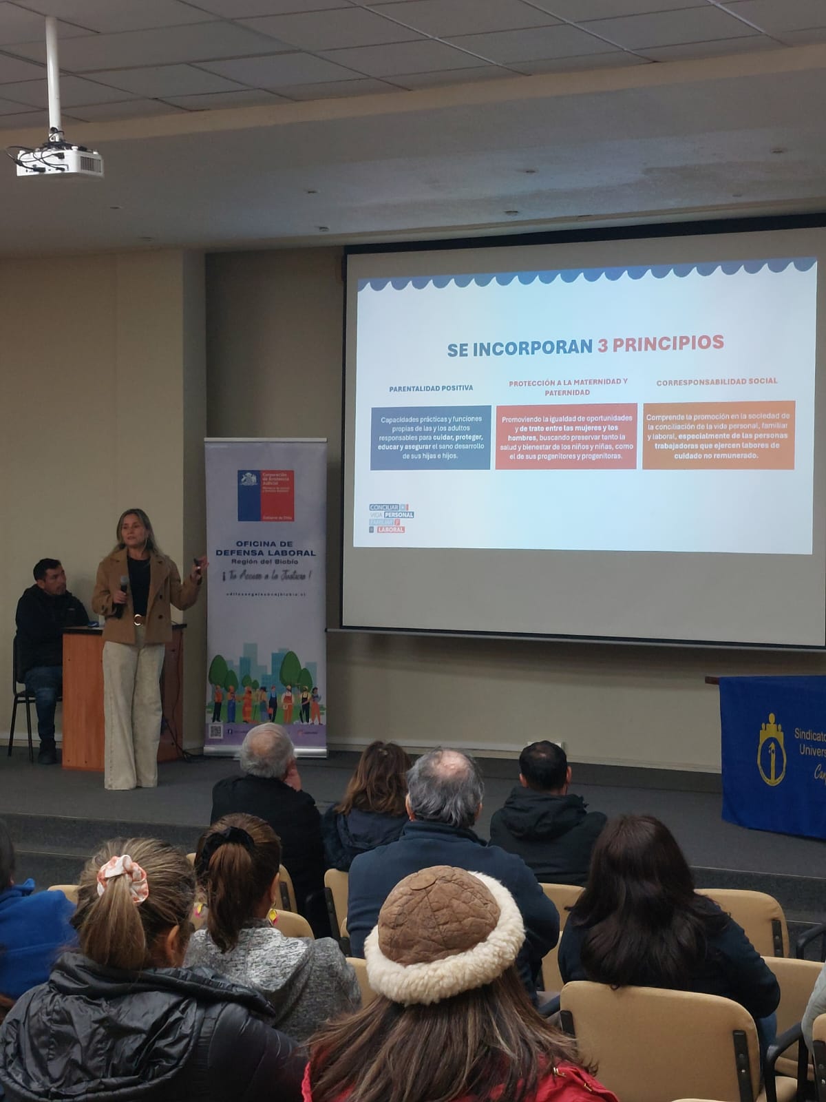 A dicha actividad se sumó un encuentro con trabajadores del sindicato de trabajadores de la Universidad de Concepción, campus Los Ángeles, quienes participaron de una charla dictada por defensoras laborales de la ODL de esa ciudad, Paula Aguayo y Claudia Segura, quienes expusieron sobre la ley de Conciliación de la Vida Personal, Familiar y Laboral.