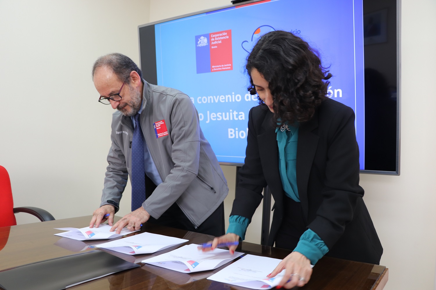 Intercambio de experiencias, capacitaciones conjuntas y trabajo colaborativo en materia de migración y extranjería son algunos de los alcances que tendrá el convenio que firmaron los directores de la Corporación de Asistencia Judicial (CAJ) de la Región del Biobío y el Servicio Jesuita a Migrantes (SJM) en Concepción.