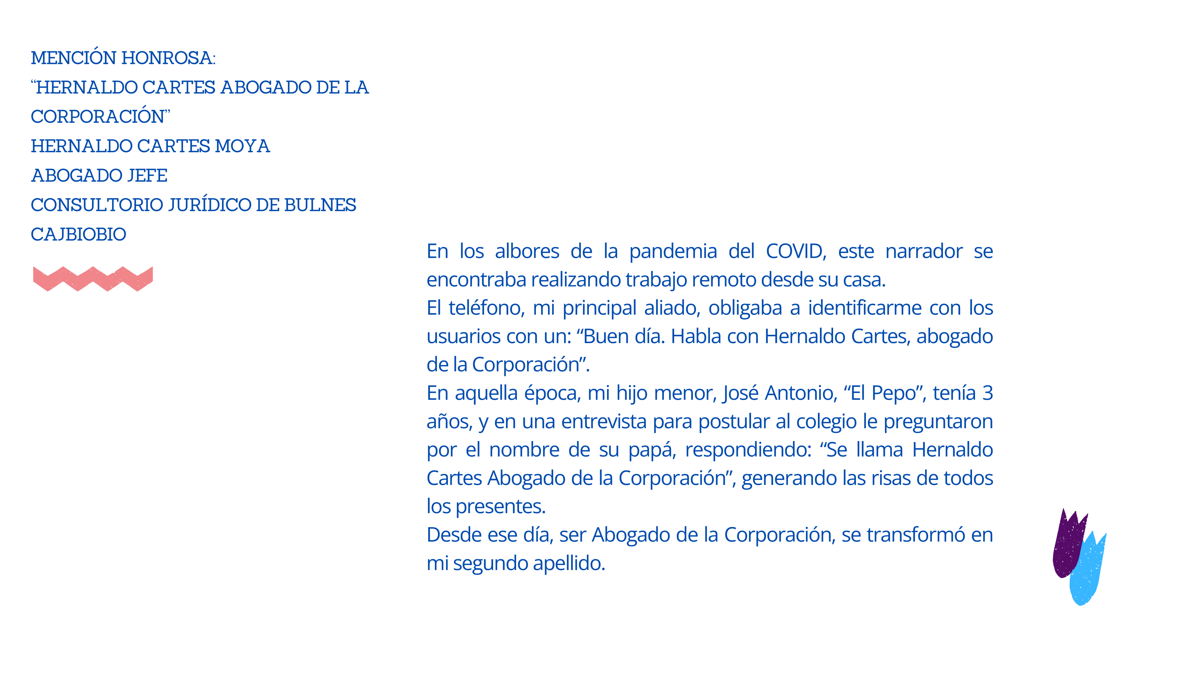 - Mención honrosa Hernaldo Cartés Abogado de la Corporación Hernaldo Antonio Cartes Moya Abogado Jefe.