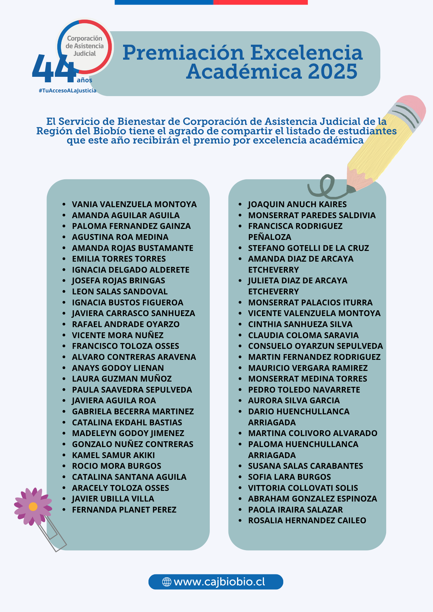 El Servicio de Bienestar de la CAJ Biobío reconoció a un total de 54 estudiantes, hijos e hijas de funcionarias y funcionarios de la institución, que durante el 2024 destacaron por la excelencia académica.