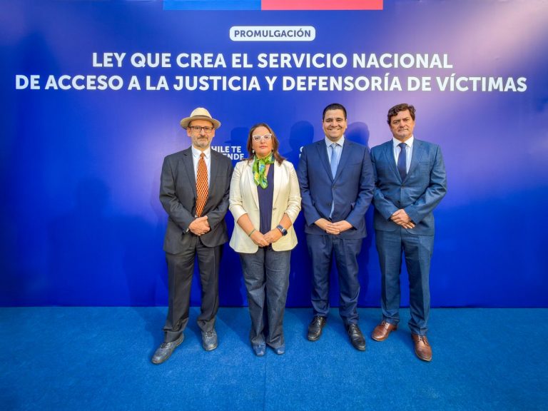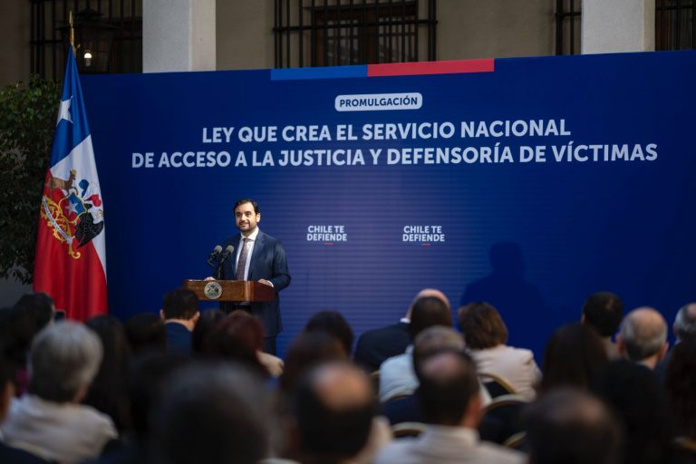 “Estamos en este acto promulgatorio de la ley que crea el Servicio Nacional de Acceso a la Justicia y la Defensoría de las Víctimas. Esta es una ley fundamental para nuestro país. Es un gran paso que está dando nuestro país para que todos los ciudadanos y ciudadanas (0:27) puedan acceder a la justicia, a una justicia oportuna, a una justicia eficiente, a una justicia profesional, sin depender de sus medios económicos. Por lo mismo es tan relevante porque el acceso a la justicia es lo que viabiliza el ejercicio de otros derechos, pero además estamos promulgando esta ley que crea la Defensoría de las Víctimas”, dijo el ministro Jaime Gajardo.