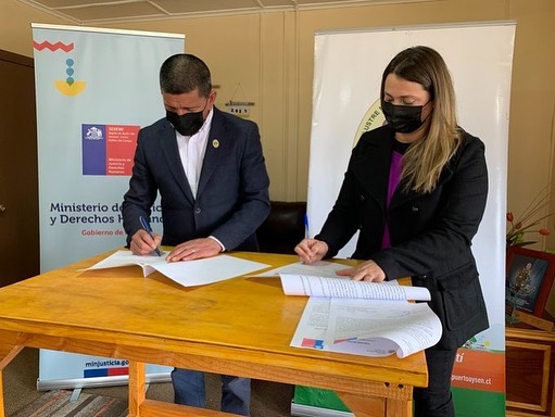 La Directora Regional (s) de la Corporación de Asistencia Judicial del Biobío en la Región de Aysén, María Francisca Vilches, participó de la firma de dos importantes convenios, encabezados por el Seremi de Justicia y Derechos Humanos en la zona, Samuel Navarro.