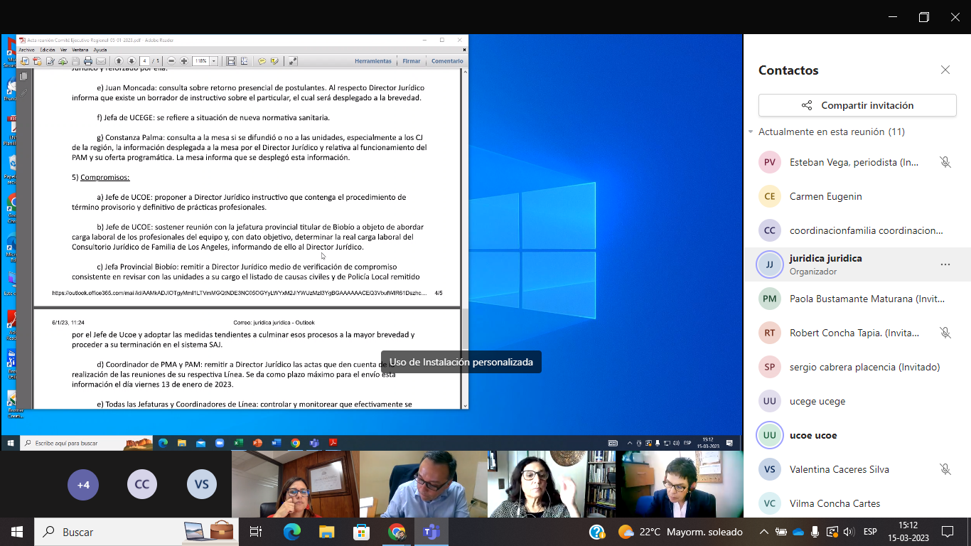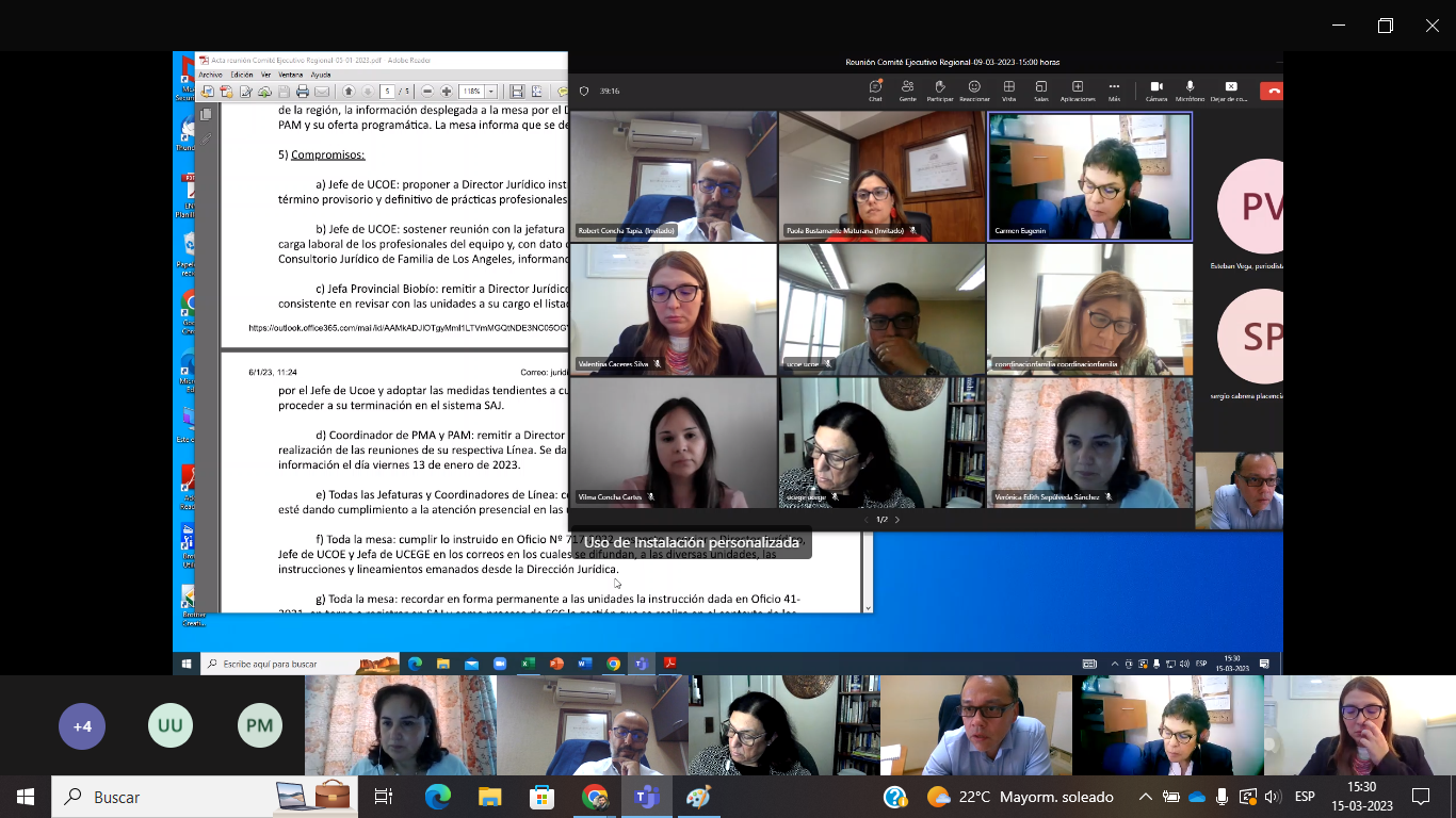 La reunión -de carácter virtual-permitió revisar el cumplimiento de los compromisos, la revisión de las metas institucionales para el presente año y establecer objetivos para el funcionamiento de las oficinas de la CAJ Biobío.
