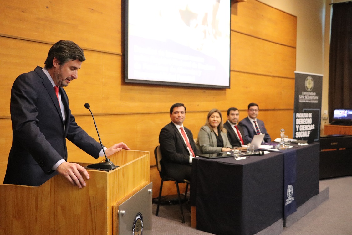 El encuentro fue organizado por la facultad de derecho y ciencias sociales de la Universidad San Sebastián, sede Concepción. La coordinadora regional de la línea de Familia de la CAJ Biobío, Sandra Bujes, expuso durante la instancia.