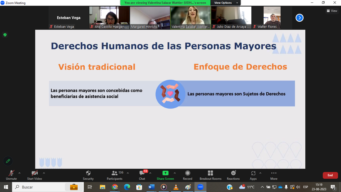 Este hito contó con una presentación de la trabajadora social de la dupla del Programa de Defensa Jurídica Integral de Personas Mayores en Los Ríos, Diane Riquelme y el abogado que integra el equipo en Ñuble, Patricio Salgado, que se sumó a la exposición de las profesionales de la Dirección Nacional de Senama.