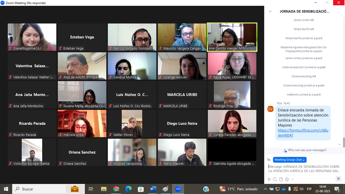 Más de 160 funcionarios y funcionarias de la Corporación de Asistencia Judicial del Biobío, desde Ñuble hasta Aysén, participaron de la Jornada de Sensibilización sobre la Atención Jurídica de Personas Mayores, convocada por el Ministerio de Justicia y Derechos Humanos en coordinación con Servicio Nacional del Adulto Mayor (Senama).